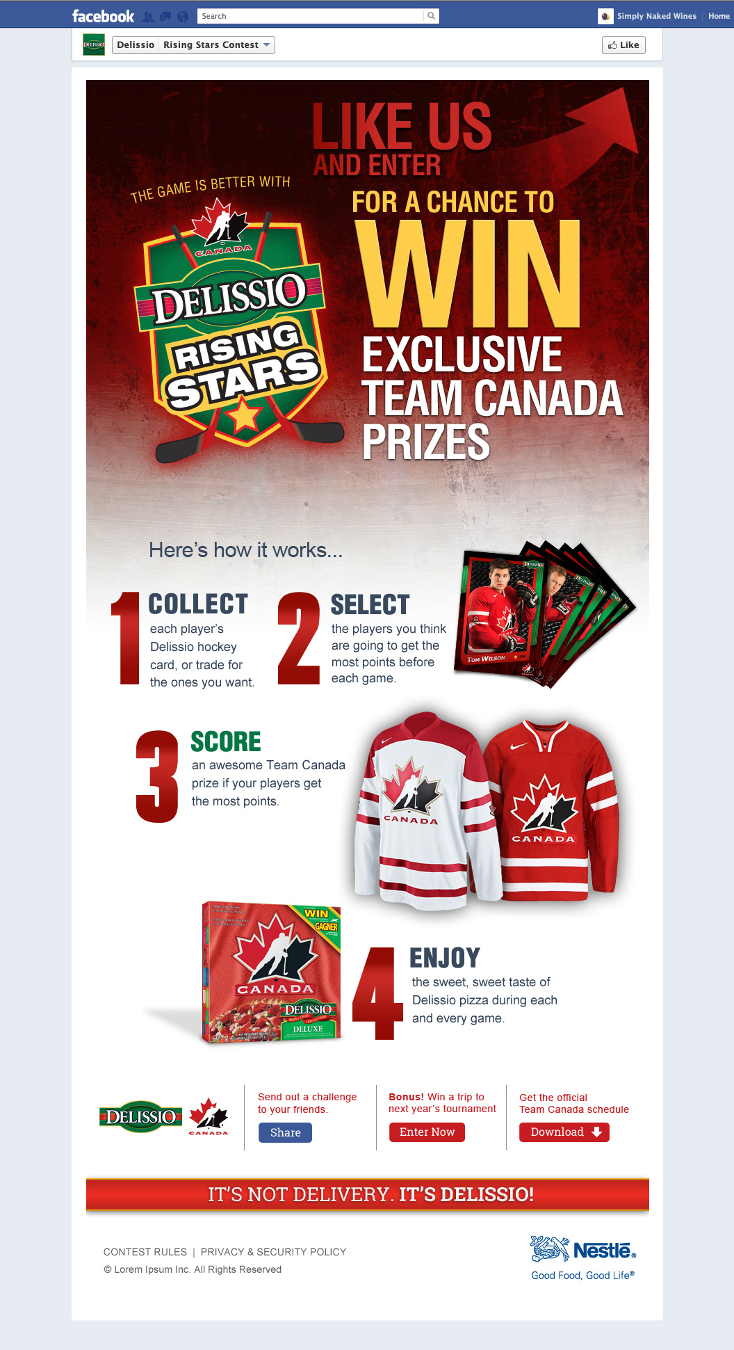 At Publicis, we designed and developed the Delissio Rising Stars program, a multi‐channel integrated promotion housed within Facebook. It allowed consumers to collect and trade virtual Team Canada hockey cards, and play them in real‐time during the World Junior Hockey Championships. The Delissio TV spot launched a new positioning and helped bring Delissio shares to their highest levels since 2012. Our roles: CD | AD | CW